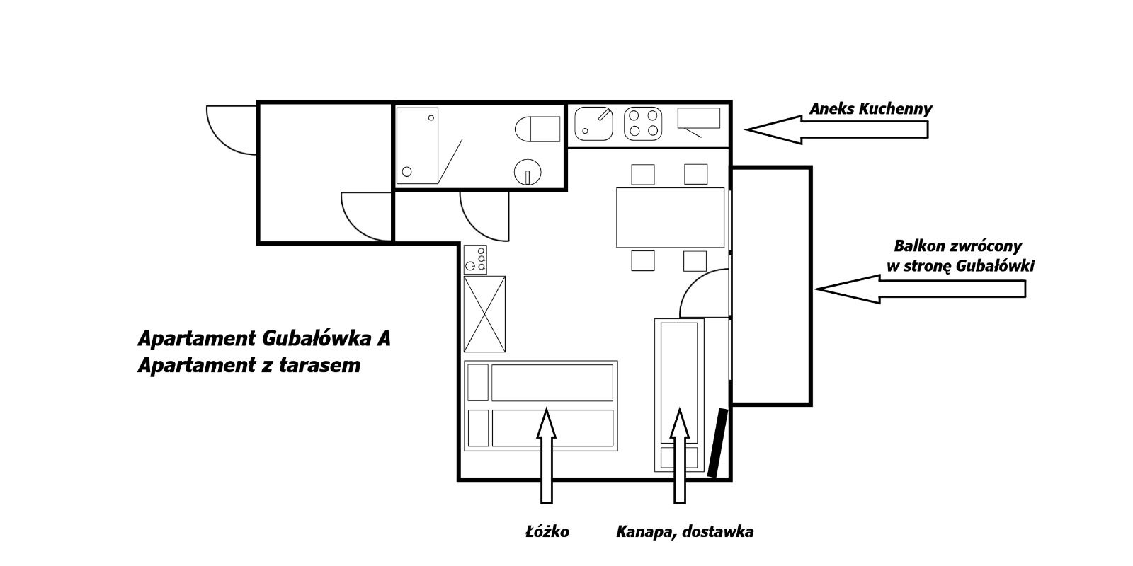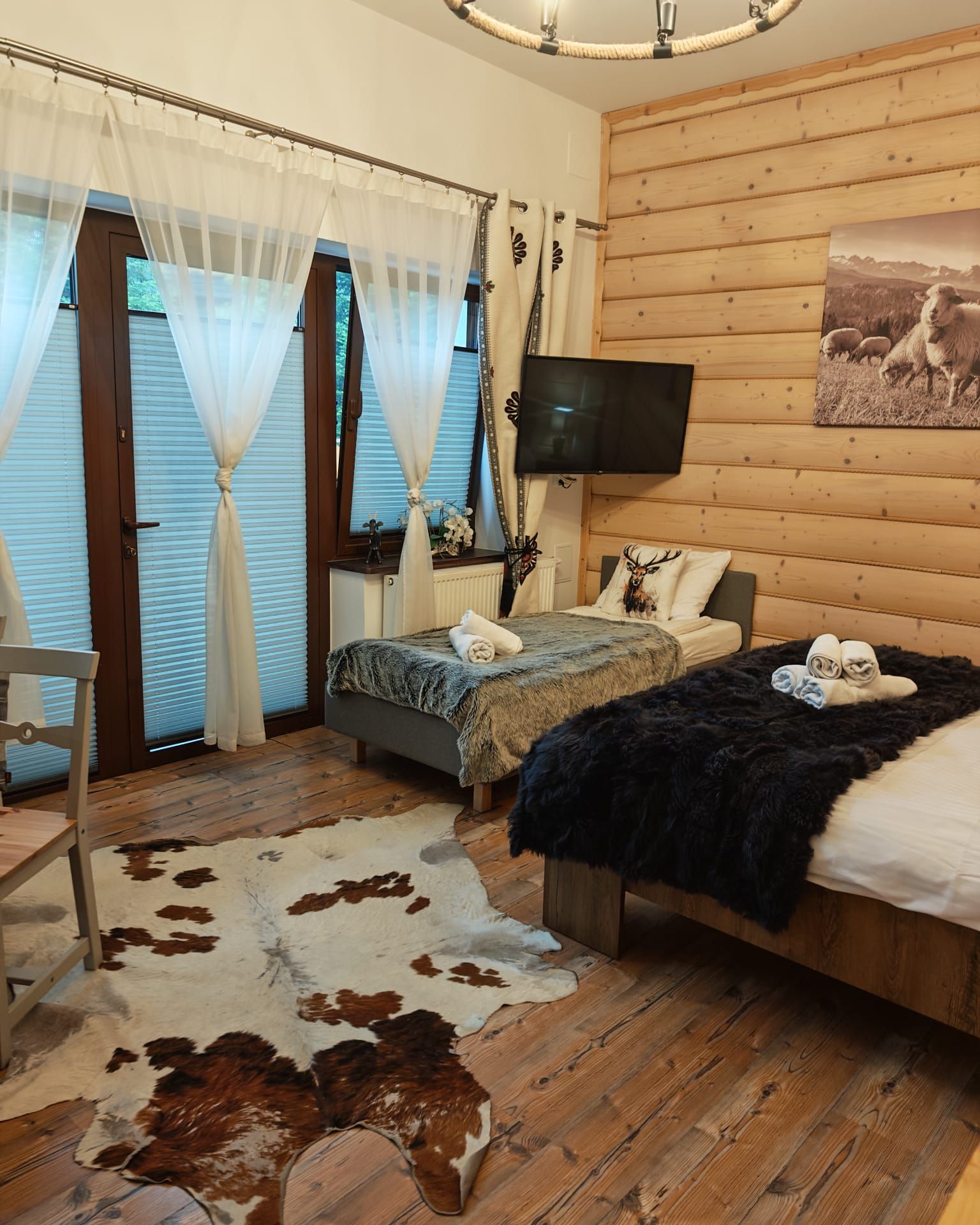Apartament Gubałówka, składa się z salonu oraz sypialni i dwóch łazienek. Wszystko urządzone w pięknym nowoczesnym stylu z akcentami podhalańskimi.