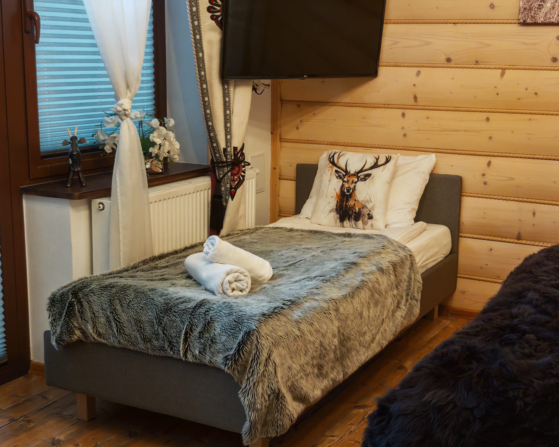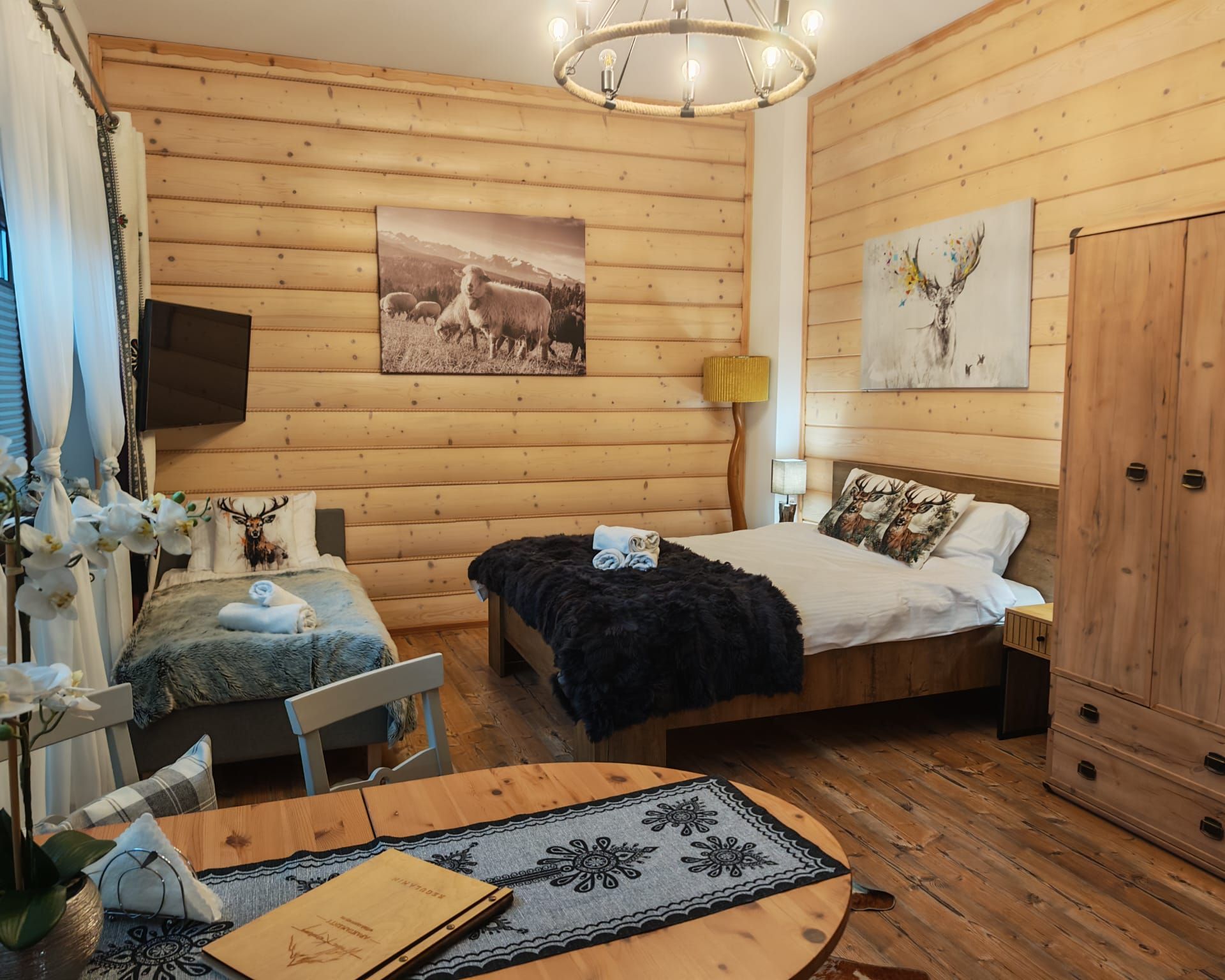 Gubalowka A appartment cosists of a romm with ensuit bathroom. The Appartemtn is arrenged in beautiful modern style with local Podhale assent. There is an equipped kitchen annex with stove, dinner table, TV. Additional bed size 80x 190 is available upon request. The appartment features a terrasse where guests can enjoy their mornign coffee.