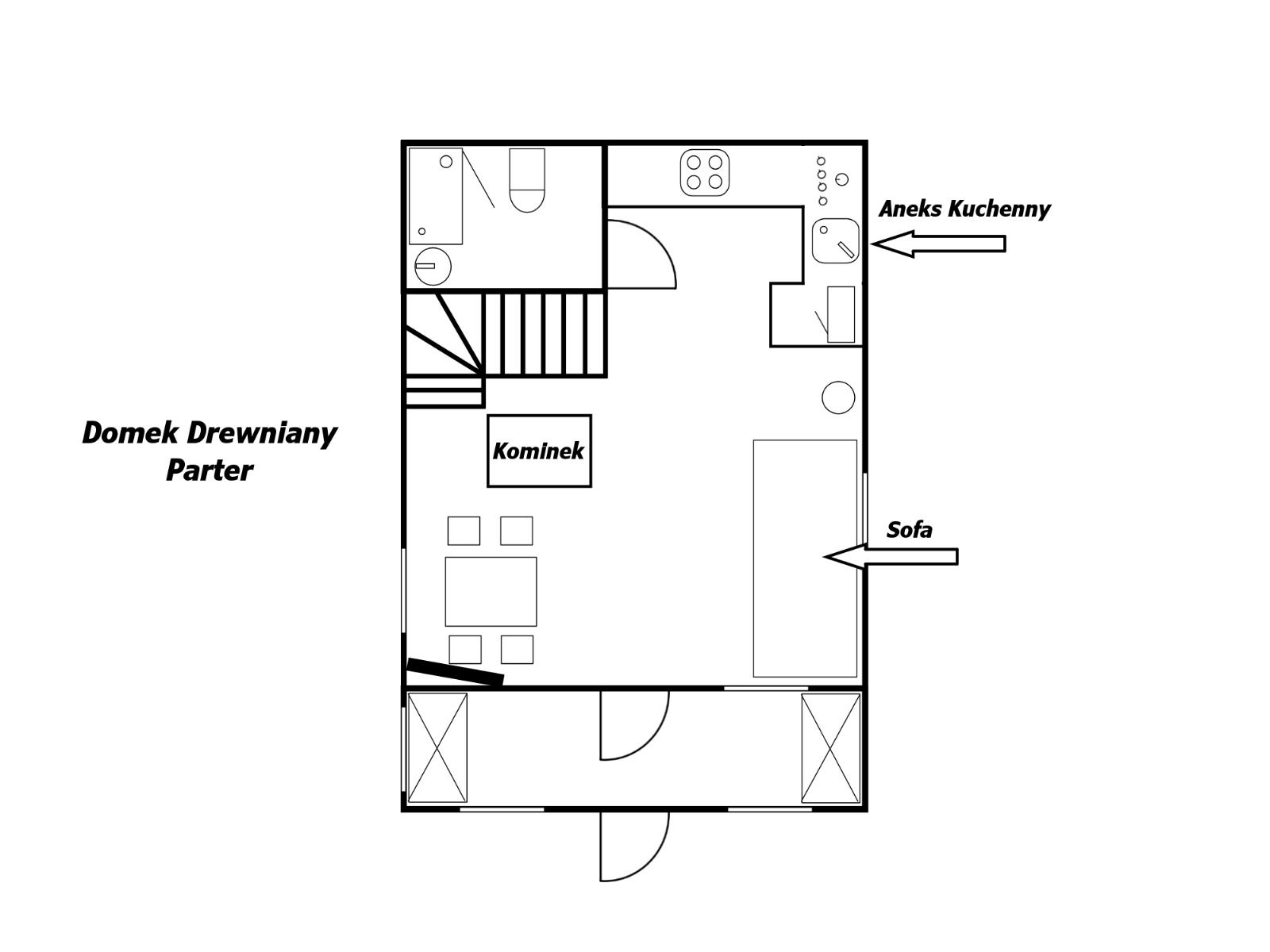 Das Häuschen Little Lodge Kasprowy befindet sich im Garten des Hauptteils vom Hotel Willa Kasprowy. Ein kleiner Bungalow mitten im Garten voller Kiefer, der aus zwei Schlafzimmern im ersten Stock, WC und einem Wohnzimmer, einer völlig ausgestatteten Küche und einem Badezimmer mit Dusche in dem Erdgeschoss besteht. In den Schlafzimmern gibt es ein Doppelbett, in dem kleineren Schlafzimmer steht aus Sofa und in dem Wohnzimmer haben wir noch ein großes Sofabett. Der ganze Bungalow ist aus Holz gebaut worden, schön dekoriert, mit einem charmanten Kamin in seinem Herzen, der die ganze Atmosphäre dieses Ortes kreiert. Aus den Fenstern breitet sich ein Blick über die Wielka Krokiew Skisprungschanze, den Giewont-Berg und die Tatra.